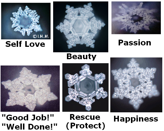 Here are some additional examples of the effects of positive energies can have on water molecules. And when you consider that the average human body contains up to 70% water (and up to 85% in the brain specifically), the implications of this study become even more profound! If positive emotions can produce this powerful of an effect on water, and water makes up such a large portion of the human body; imagine what those same qualities could do for you to enhance your quality of life!
